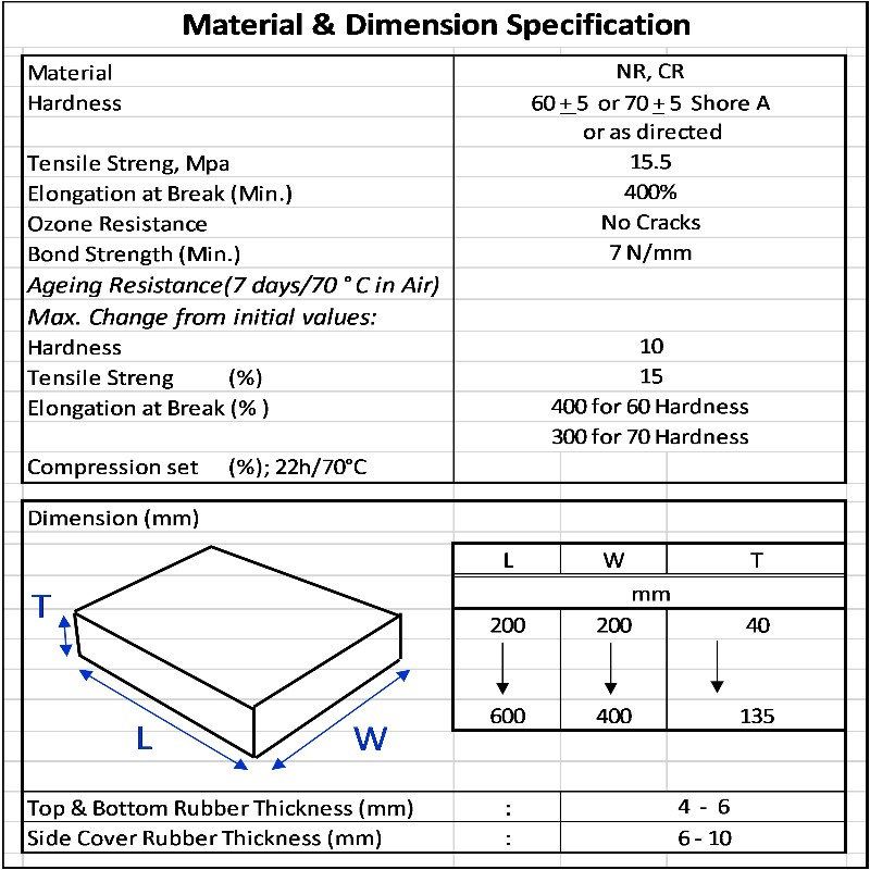Rubber Bearing Pads is one of the bridge elements made of natural rubber or synthetic rubber (neoprene). The function of the bridge bearing pad itself is to accommodate the load and the movement, both vertical and horizontal of the bridge construction.